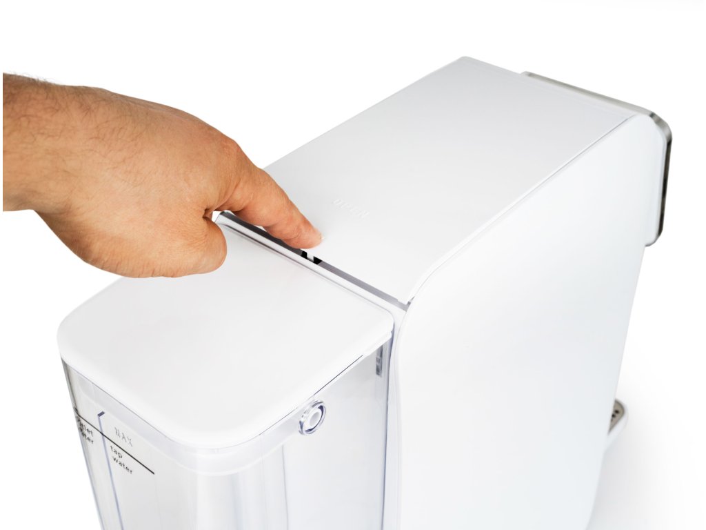 - Umístěte na rovnou plochu poblíž zdroje vody; naplňte nádržku pitnou kohoutkovou vodou.
