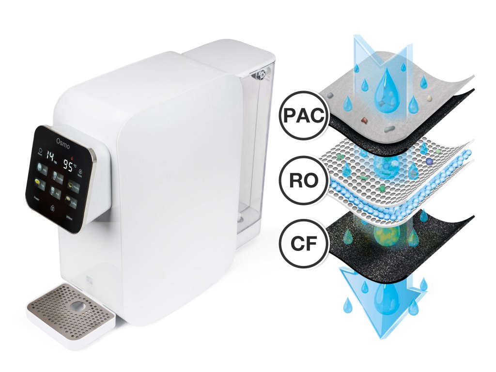 Čistička G21 Osmo využívá reverzní osmózu s vícestupňovou filtrací (PAC → RO 0,0001 µm → CF). Odstraňuje či výrazně snižuje těžké kovy, bakterie, mikroplasty, chlór a zlepšuje chuť a vůni vody. Výrobce dále uvádí účinnost na léčiva/antibiotika a hormony.
