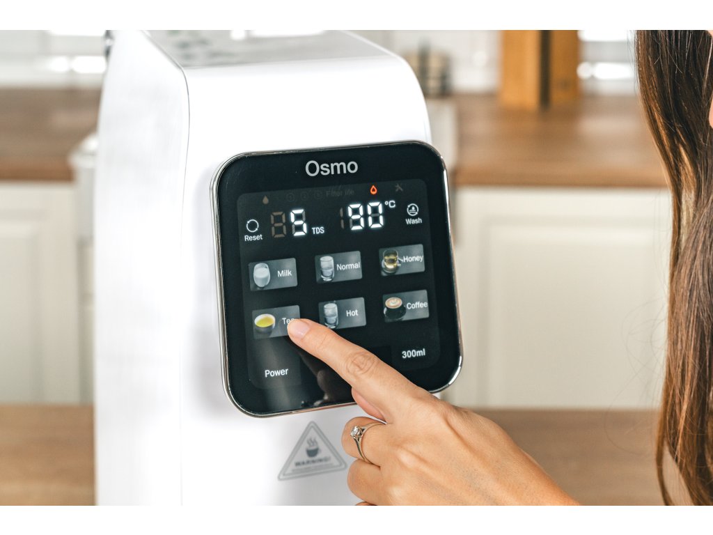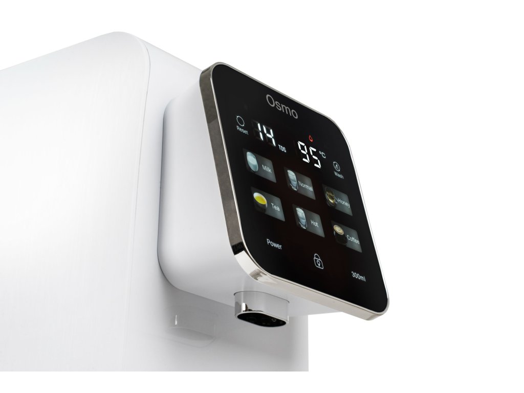 - 6 teplot 25–95 °C, dotykové ovládání, dětský zámek horké vody.