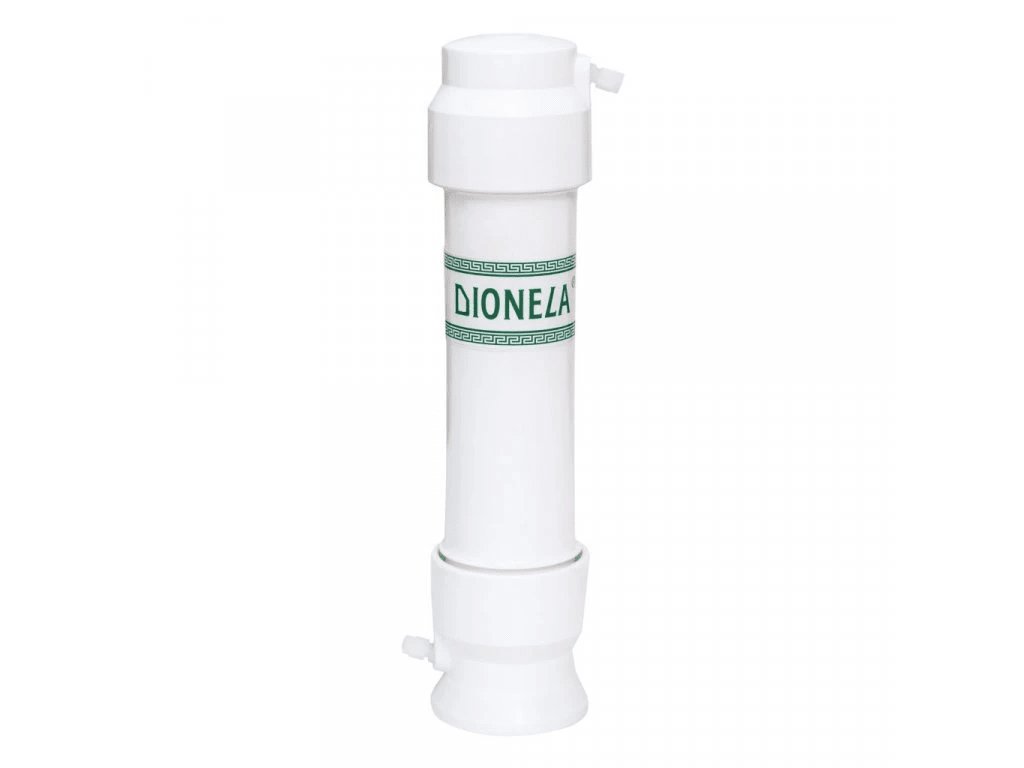 Poddřezový filtr DIONELA FDN2 (kód F2pkl) pro cílené snížení dusičnanů (NO₃⁻). Výrobce zároveň uvádí snížení chlóru, pachů a zákalu, pesticidů, organických chlorovaných látek (např. THM, chloroform), aromatických uhlovodíků (např. fenoly, benzen, toluen, xyleny, benzo[a]pyren), zbytků přírodních organických látek včetně hormonů (EDC) a vybraných těžkých kovů. Pokud není uvedeno jinak, parametry a informace vycházejí z podkladů výrobce.