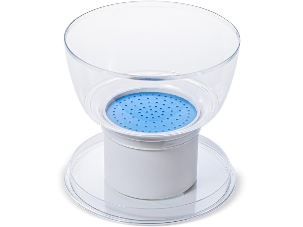 - Komponenty opláchněte (sklo teplou vodou, vložku studenou). Vložku s těsněním pevně usaďte do nálevky.