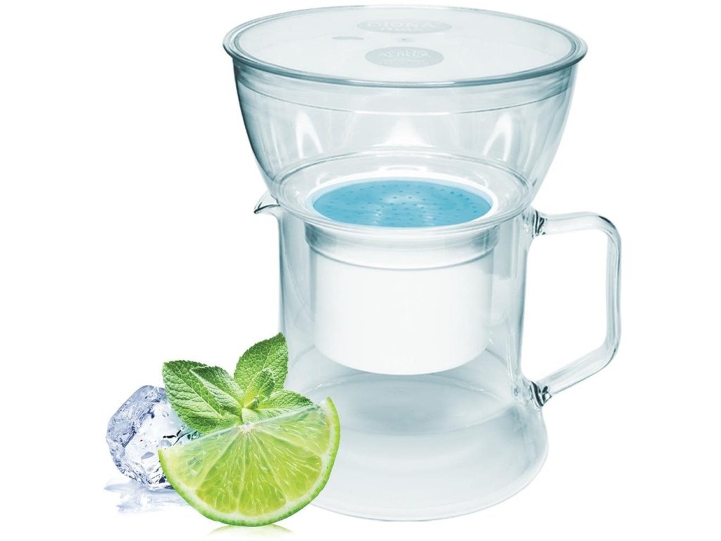 Gravitační filtrační konvice se skleněnou nádobou 1,8 l a vyměnitelnou vložkou FAM1. Horní plastová nálevka (1,4 l, nalévejte max. 1 l) a víčko jsou z Tritanu (bez BPA). Bakteriostaticky zabezpečeno pro vodu, která je bakteriologicky nezávadná.