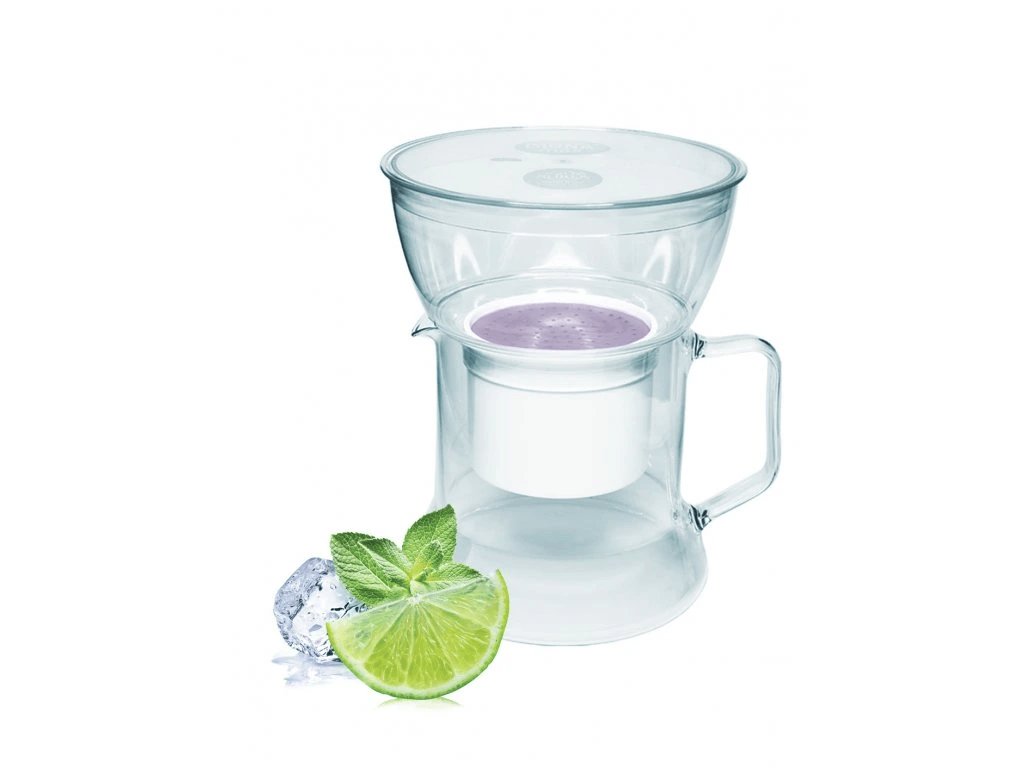 - Čištění: sklo mýt ručně či v myčce; nálevku/víčko pouze teplou vodou; vložku oplachovat studenou vodou.
