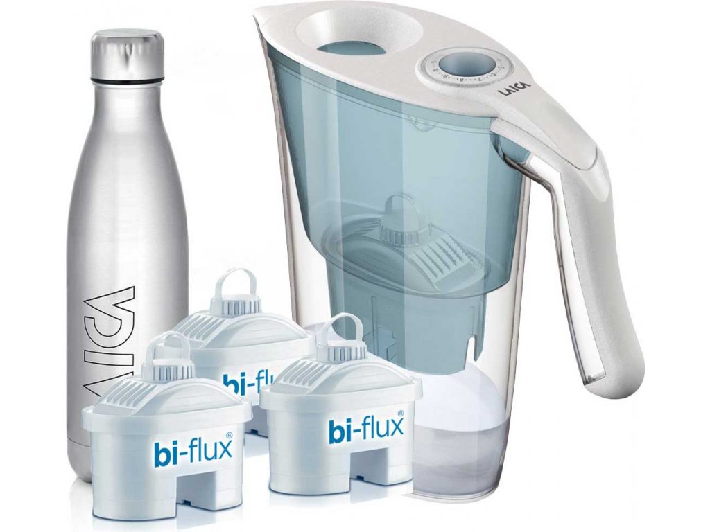 LAICA AIDA modrá + 3x filtrační patrona Biflux + sportovní nerezová láhev