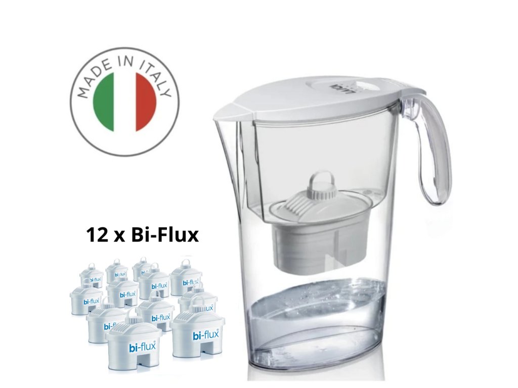 2,3 l • 1,2 l filtrované vody • 12× bi-flux® • indikátor výměny • BPA-free • do dveří lednice • Made in Italy (dle výrobce)