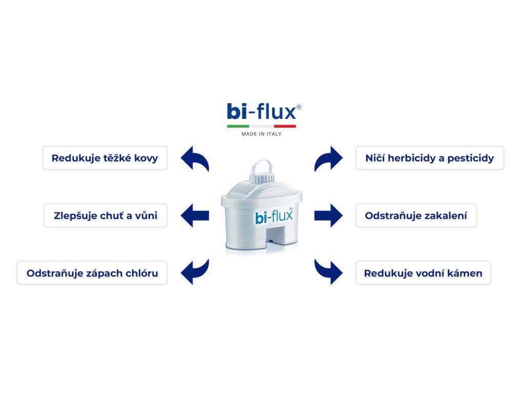 - Bi-flux® filtrace – snižuje chlór, vodní kámen, těžké kovy a další nečistoty