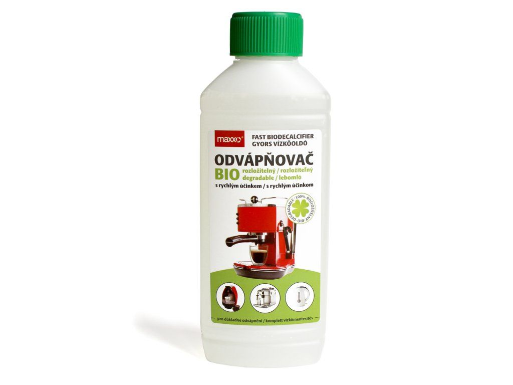Odvápnění je velmi snadné: zředěný roztok Maxxo BIO nechte projít systémem čistícího programu dle manuálu vašeho spotřebiče a následně nádržku i celé vedení dobře propláchněte čerstvou, pitnou vodou.